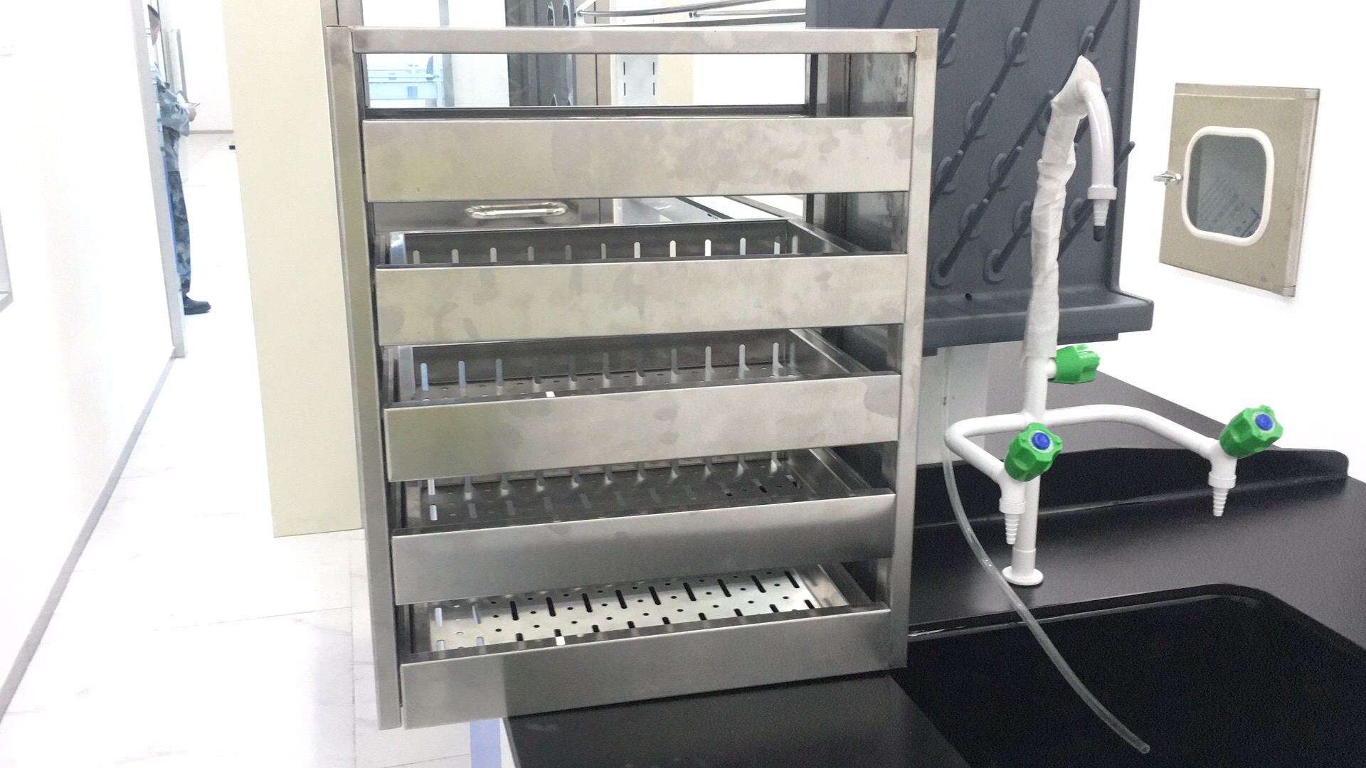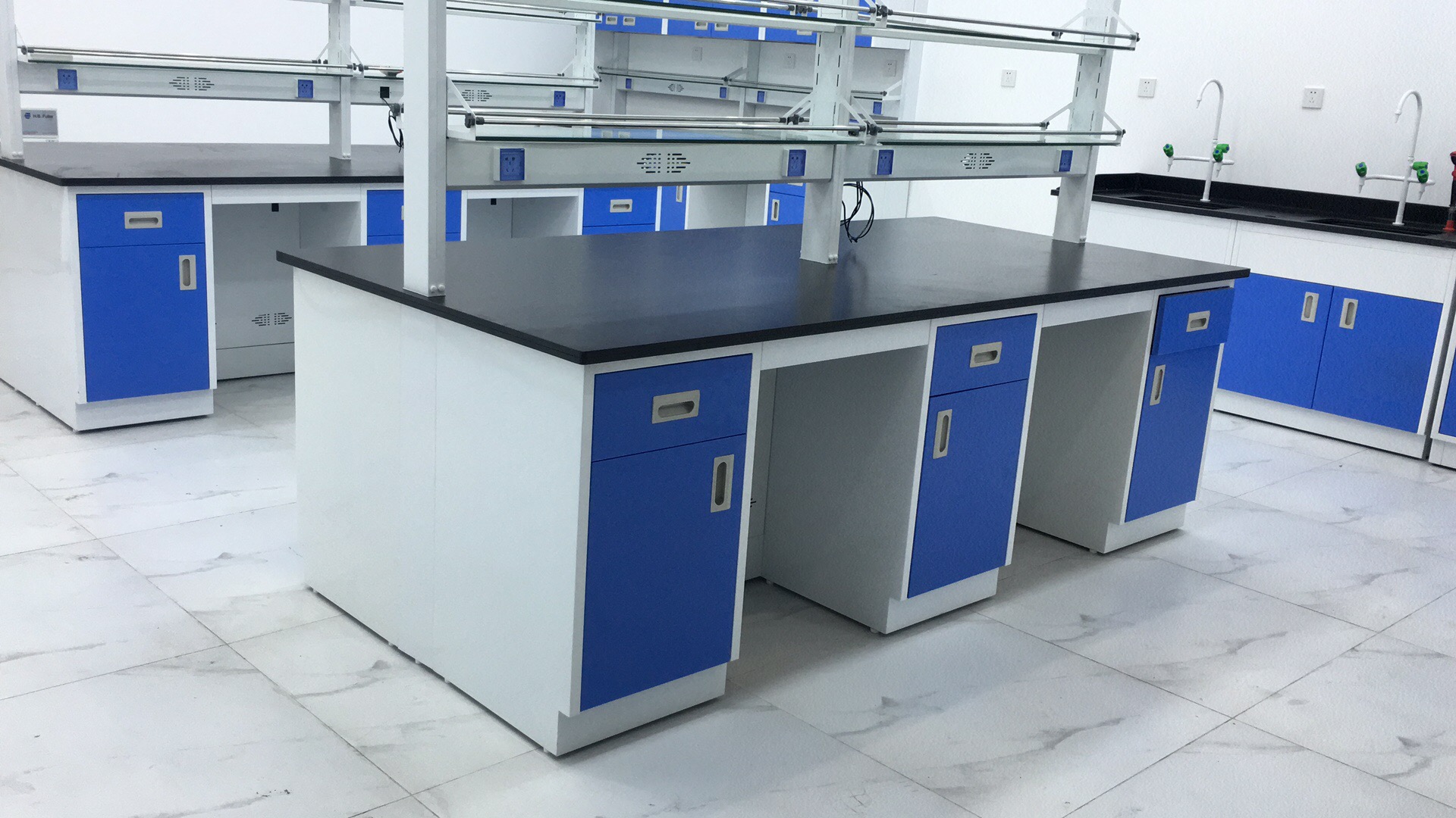 2、臺面: a、理化貼面板采用25mm厚的國產優質環保型中纖板為基材,表面粘壓耐酸堿的進口0.9mm厚Chemsurf理化板,臺面四周斷面經國產優質2.0mm厚PVC封邊防水處理,外表美觀、光滑。b、實心理化板采用12.7mm進口實心理化板,四周邊緣加厚至25.4mm,邊緣做圓角磨邊處理,符合人體工學設計,具有耐酸堿、耐腐蝕、耐沖擊、韌性強等特點。c、千思板采用13mm厚荷蘭進口TRESPA實驗室臺面板,四周邊緣加厚至26mm,邊緣做圓角磨邊處理,符合人體工學設計,具有抗撞擊、耐酸堿、耐腐蝕、耐刻刮、易清潔、抗紫外線、防靜電等特點。d、環氧樹脂板由環氧樹脂、石英砂、固化劑和顏料一次性壓模而成,抗高溫、24小時超強防腐蝕,絕對防潮、可修復,越是在極端惡劣的實驗條件下,越是表現出眾。