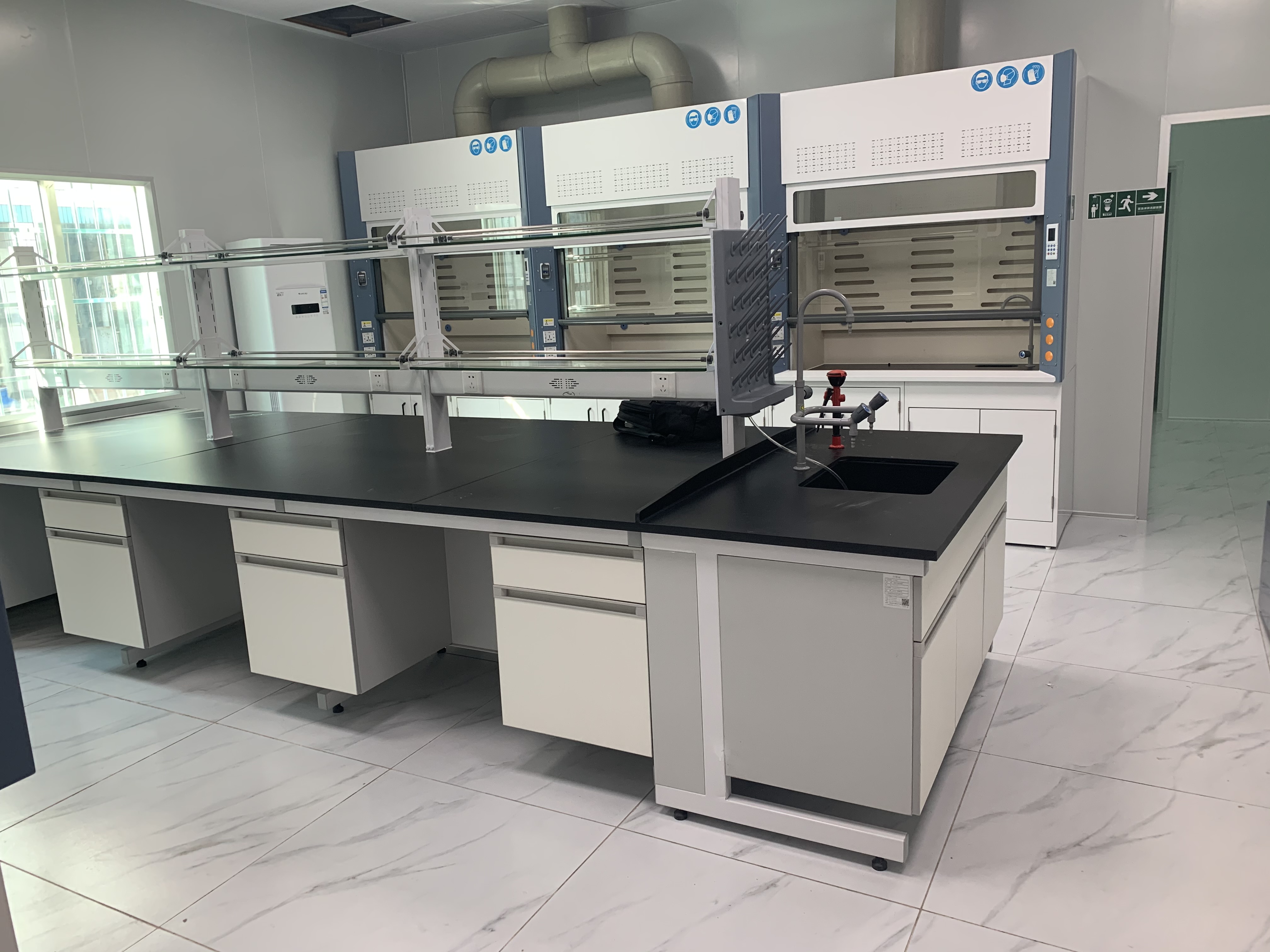 (3)臺(tái)面:采用12.7mm實(shí)驗(yàn)室專(zhuān)用優(yōu)質(zhì)實(shí)芯理化板,耐酸堿、耐腐蝕;邊緣加厚、細(xì)磨圓弧收邊,防止液體外溢。