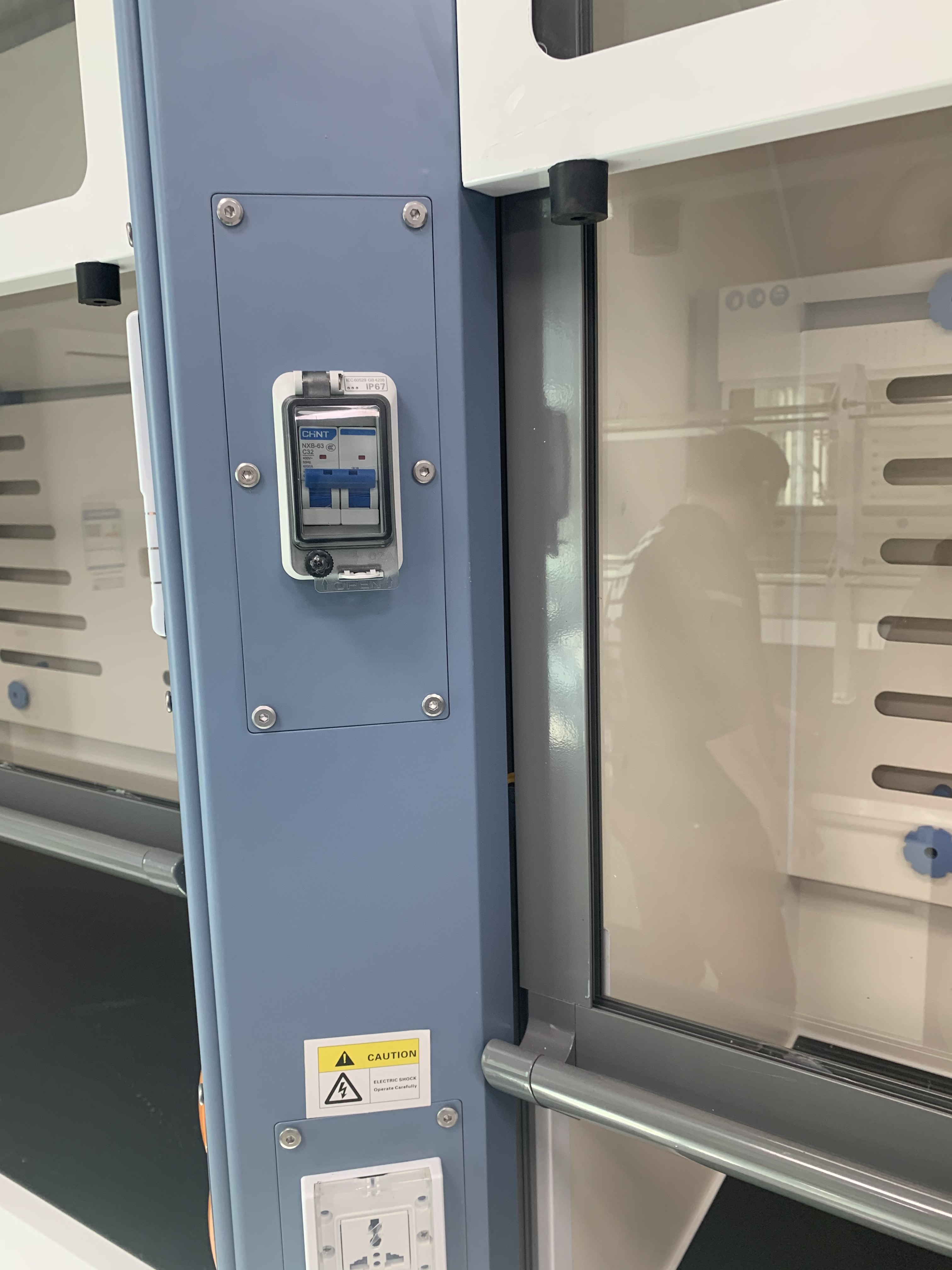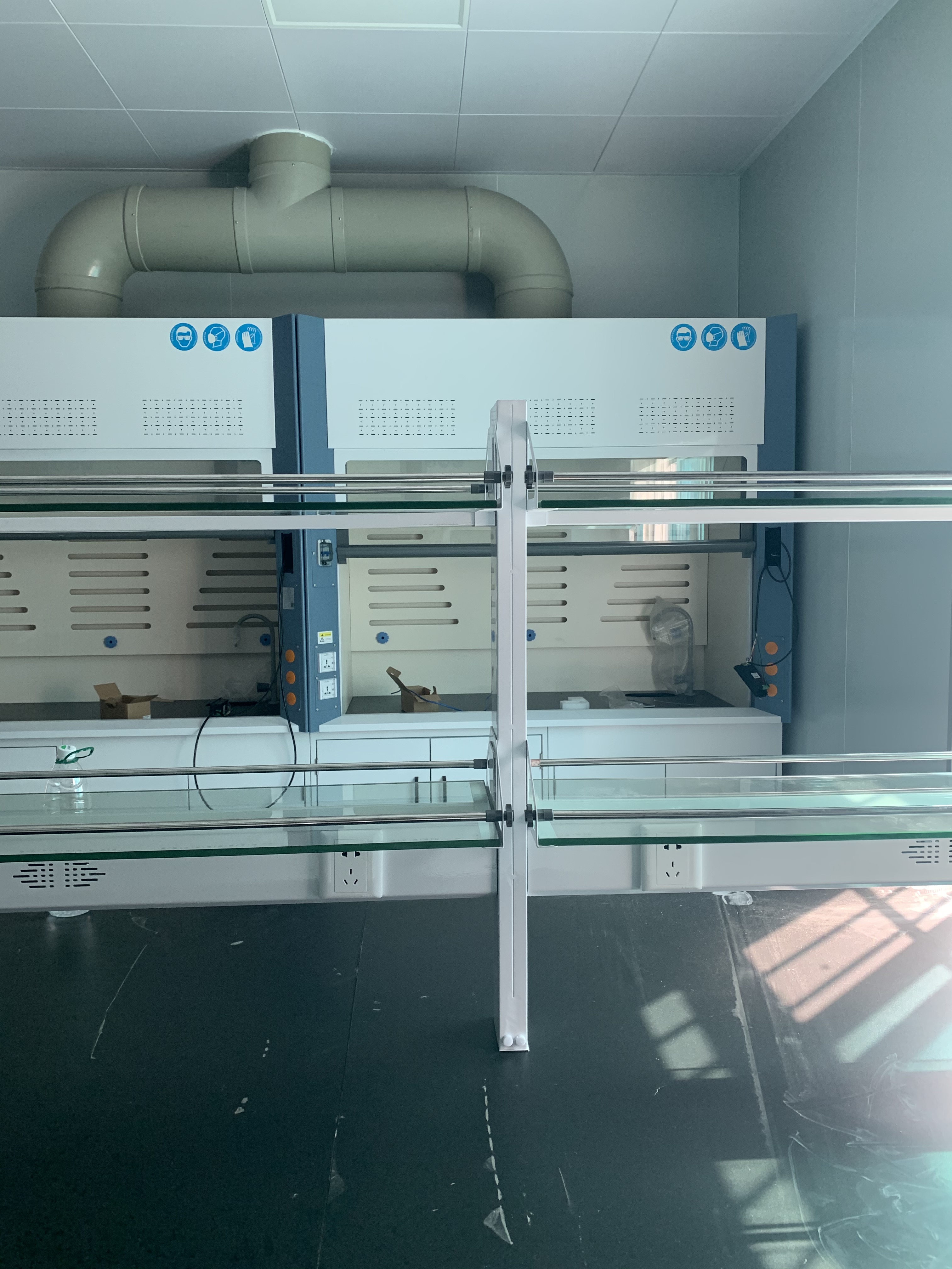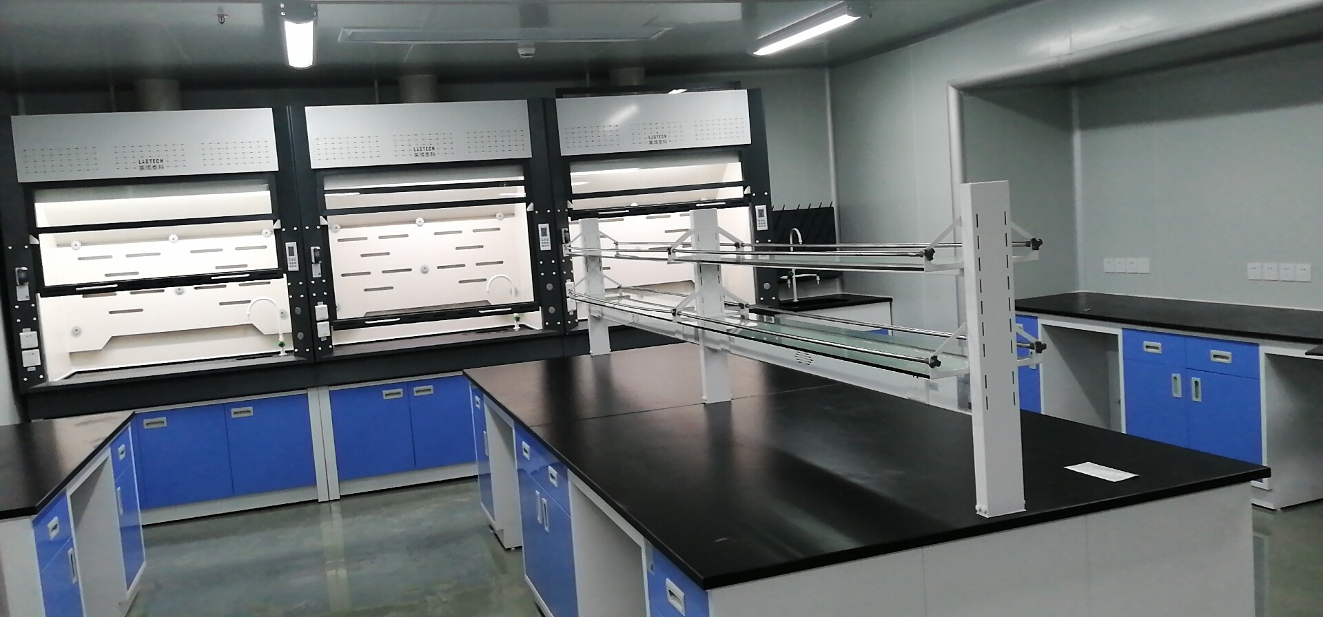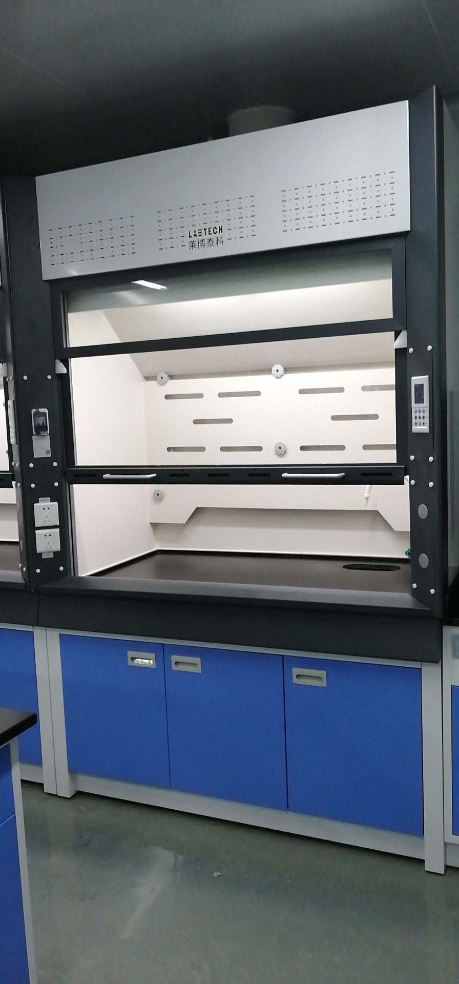 (6)照明:采用實(shí)驗(yàn)室專(zhuān)用節(jié)能燈具,隱藏于頂板上,不與通風(fēng)柜內(nèi)實(shí)驗(yàn)氣體直接接觸,易更換,亮度完全滿足實(shí)驗(yàn)要求。