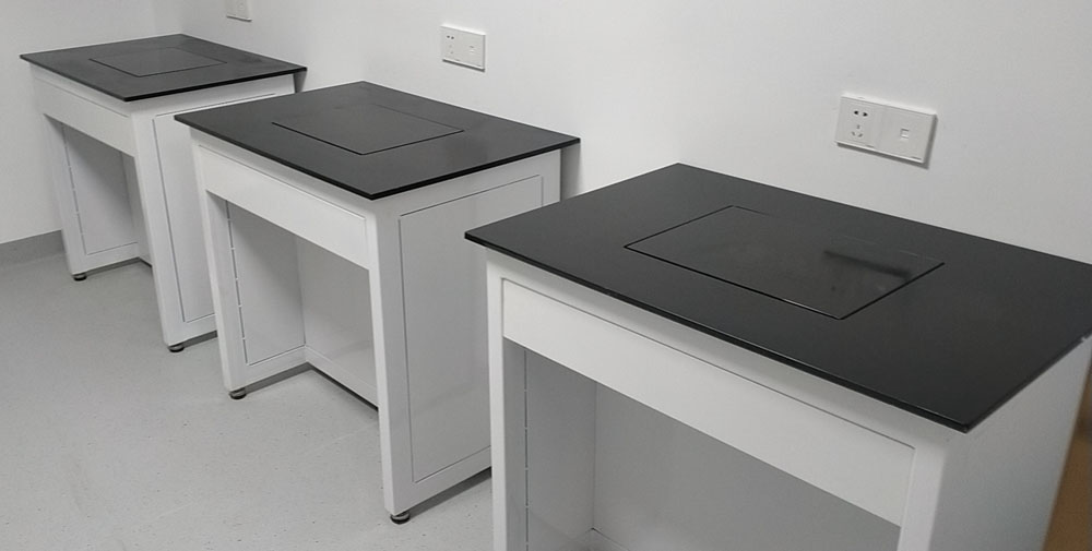 1.臺面:采用12.7mm厚進口實芯理化板,中心鑲有350*400*40mm厚大理石,設有減震墊。